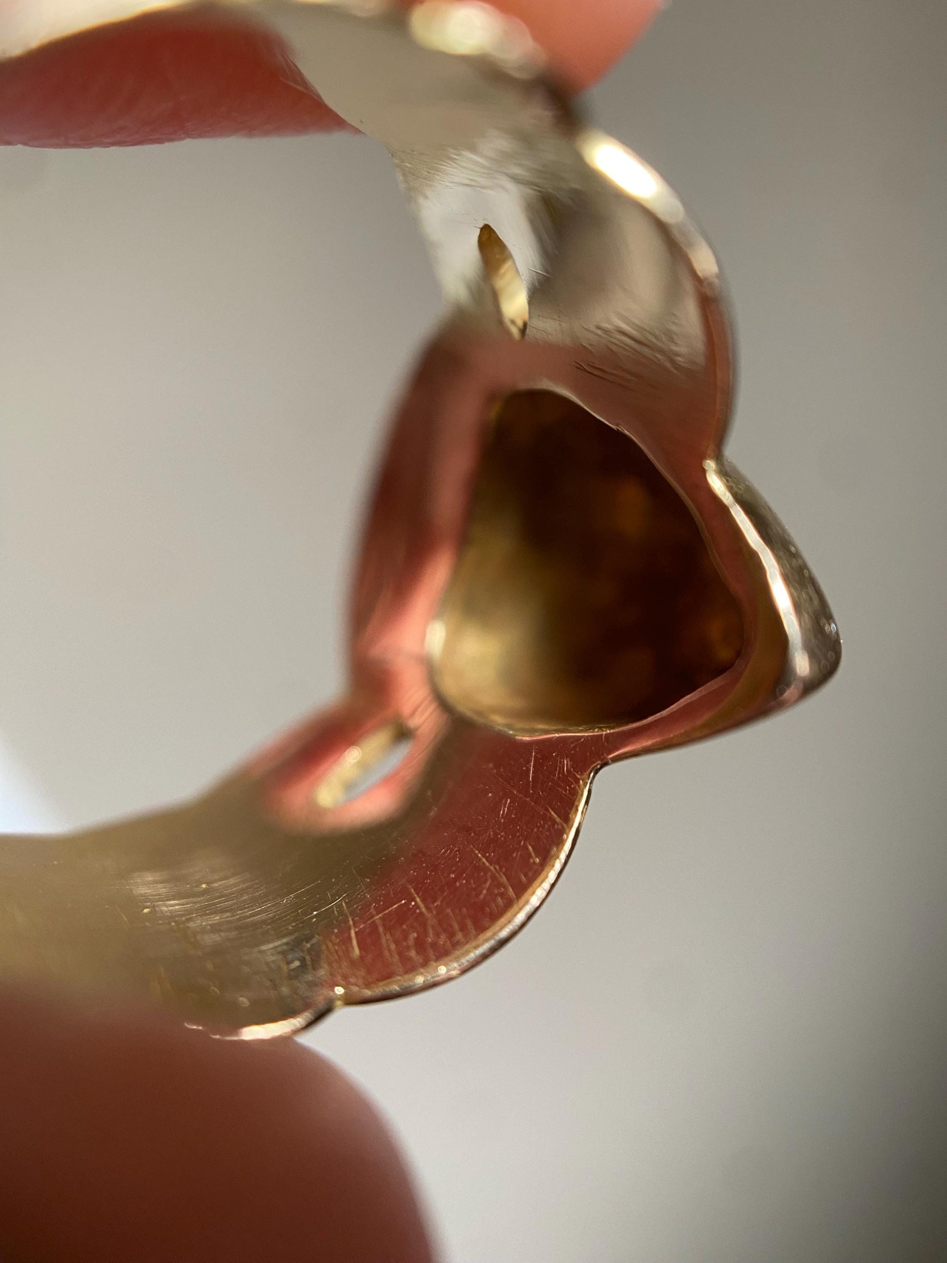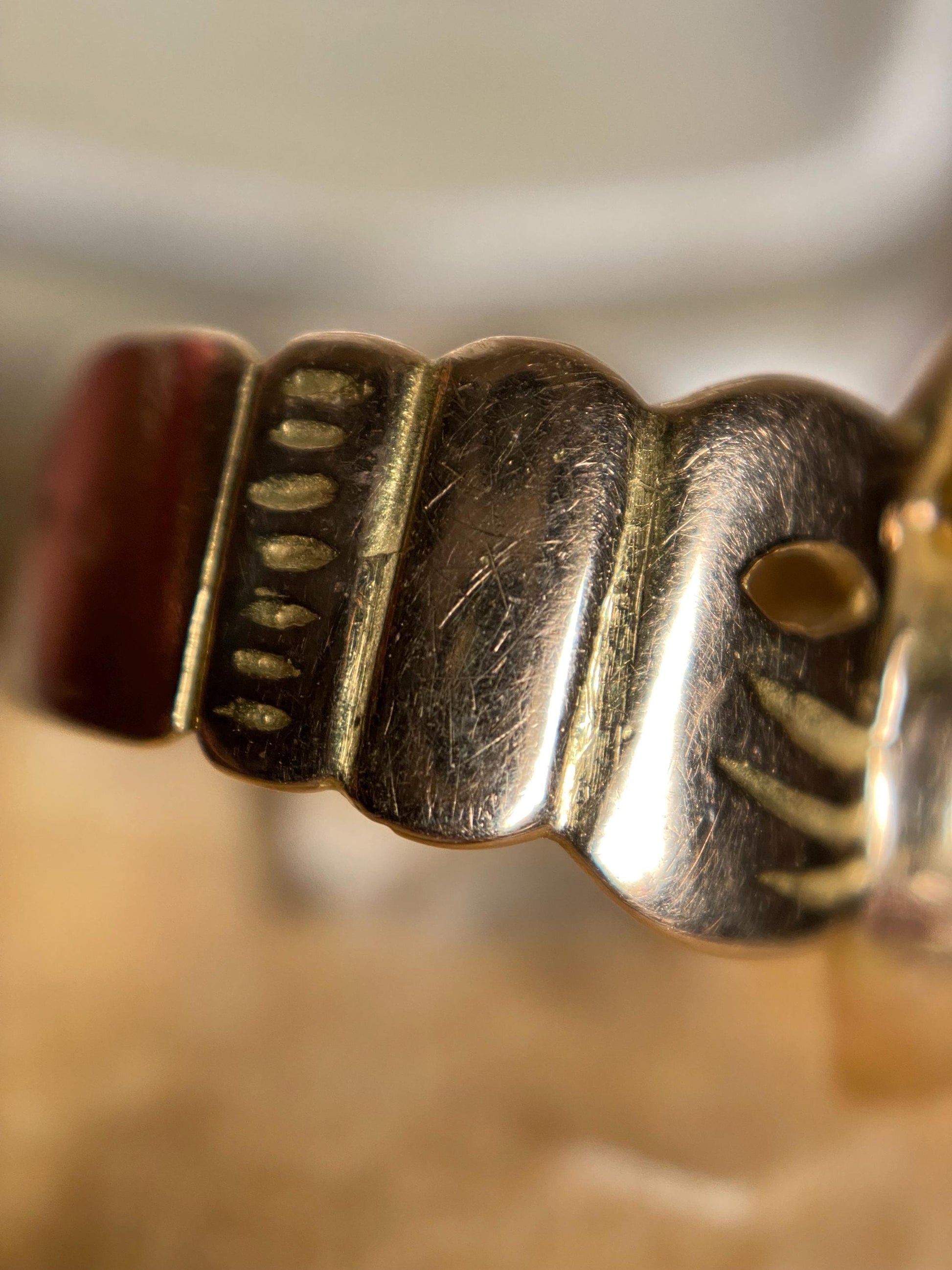 Also known as a "bague de foi" or "faith ring," this is a highly traditional regional stylization---down to the lack of diamonds as the tradition of the diamond engagement ring was not prevalent in France prior to the second half of the 19th century.