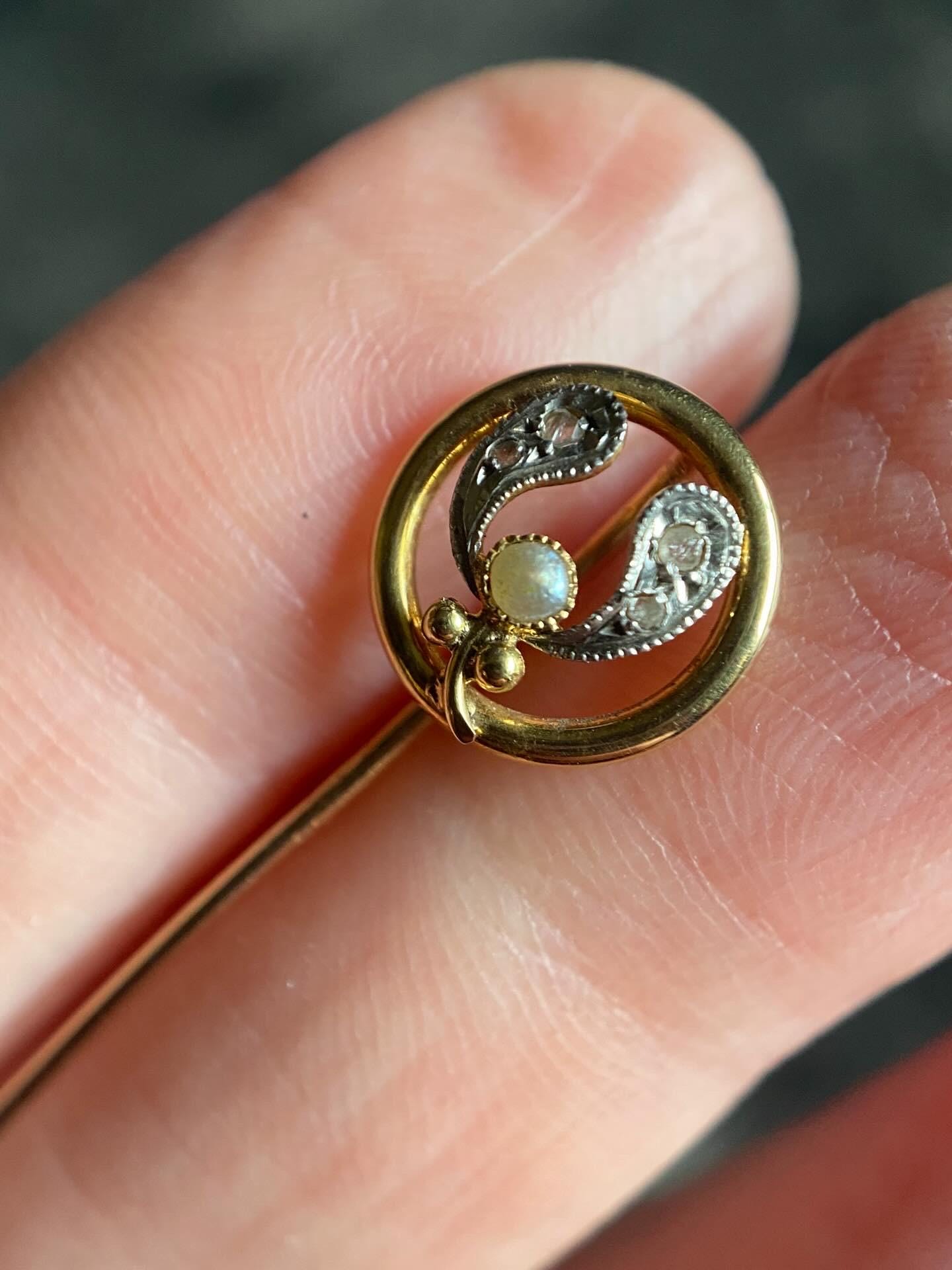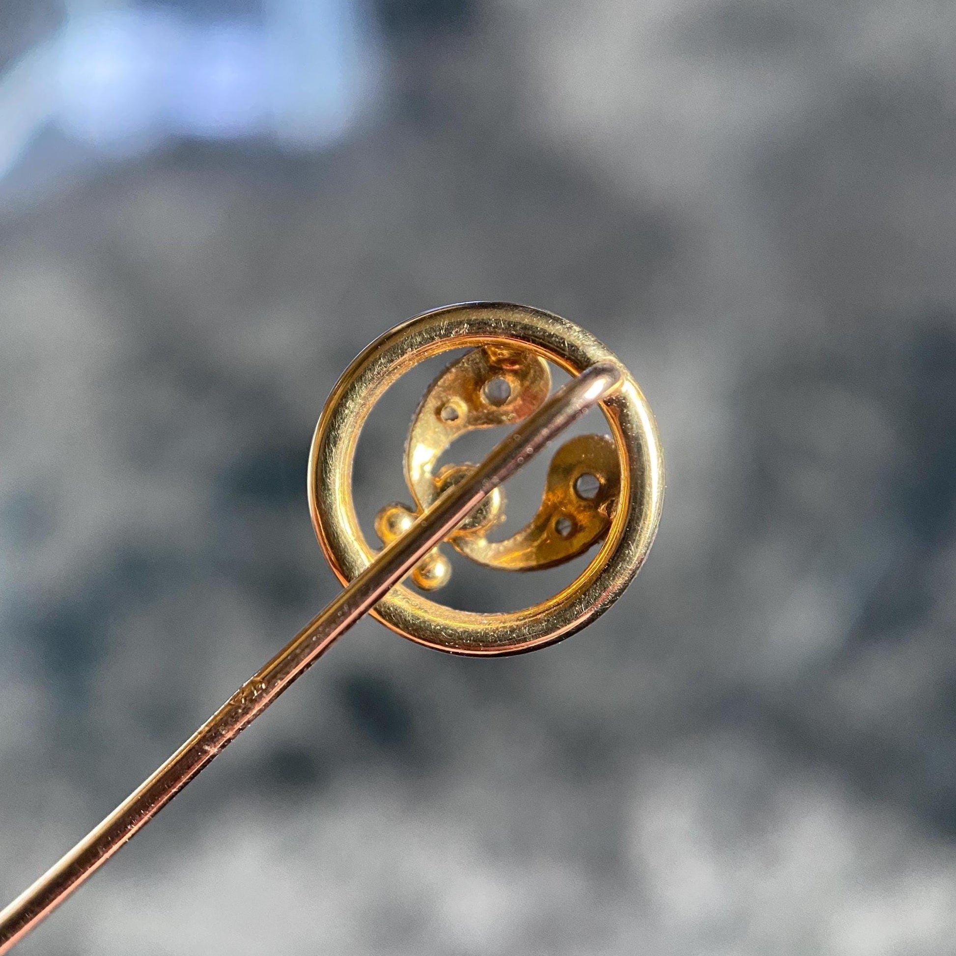 In excellent antique condition. The long pin is slightly bent from past use but is fully secured and wearable. It weighs 1.1 grams.