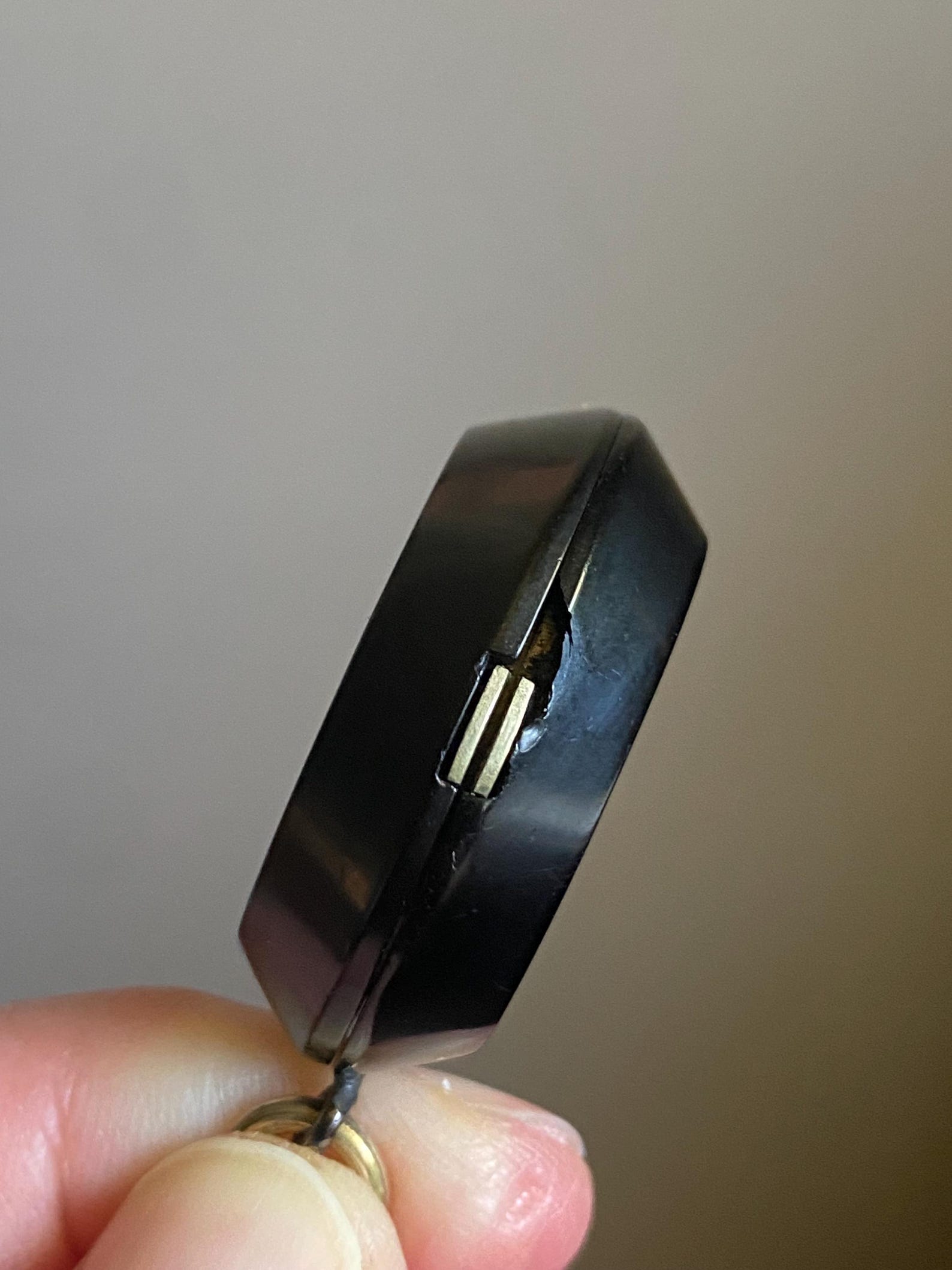 Wonderfully chubby and chunky, this carved and double sided Victorian jet locket may have originally been a mourning jewel, but has much additional charm and use than this once potential intended purpose.