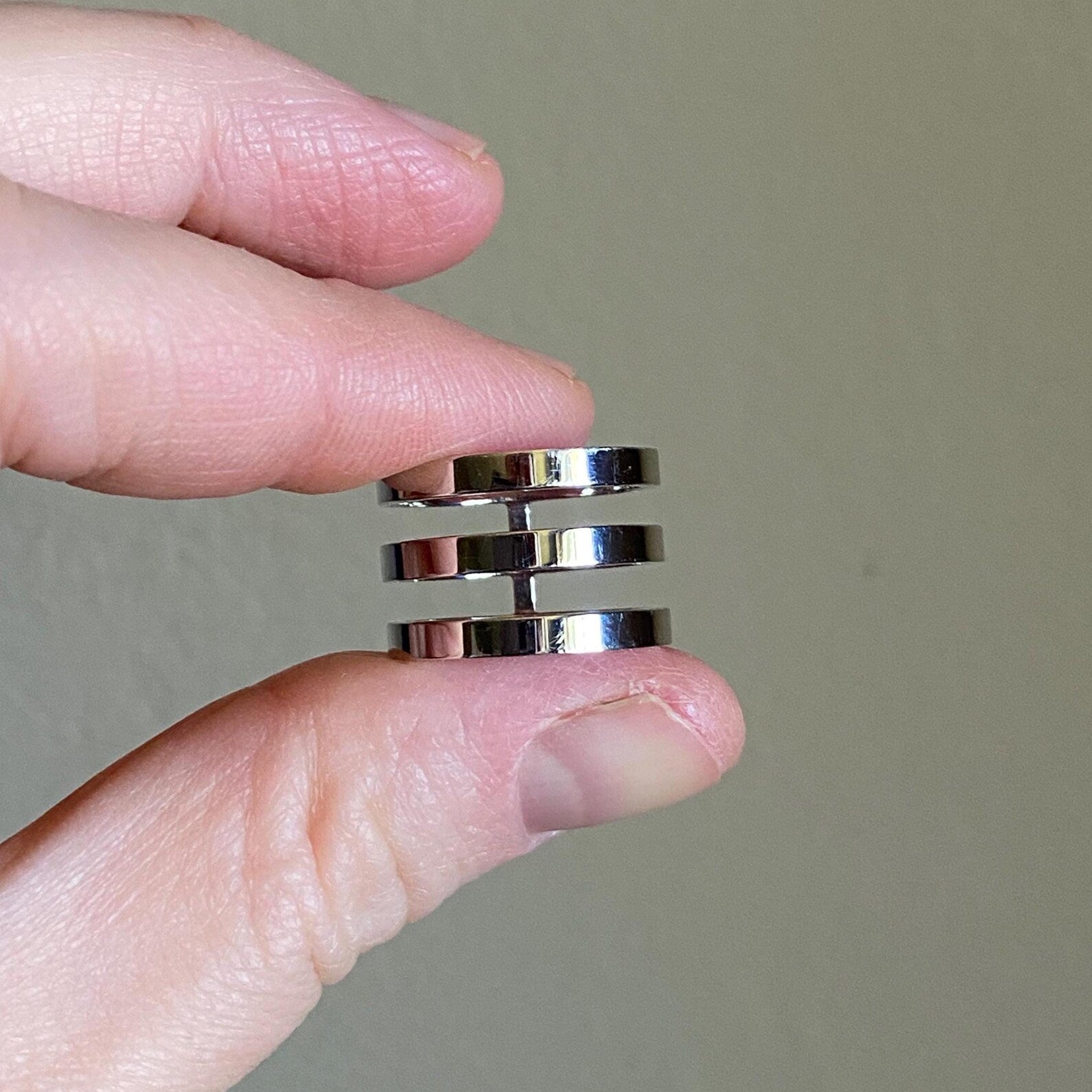 Estate Carlo Repossi Minimalist "Berbere" Triple Row Ring in 18k White Gold c. 2010, Italian, Multi-Band, Designer, Floating, Harem, Original