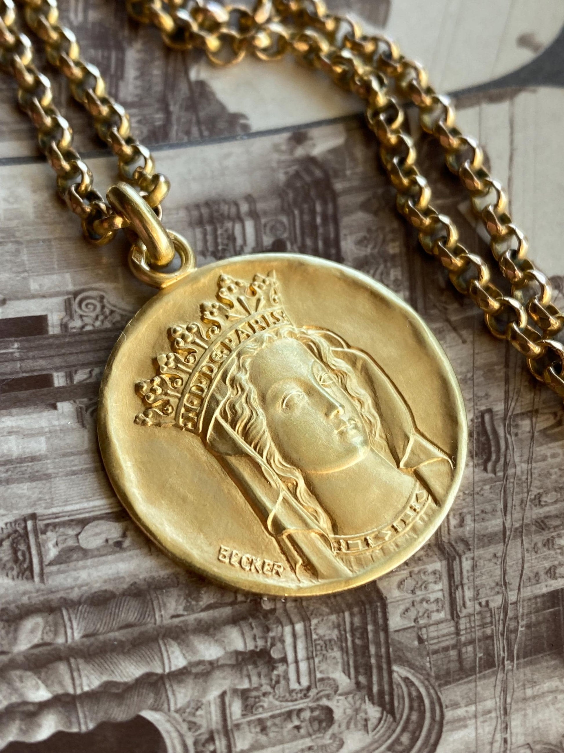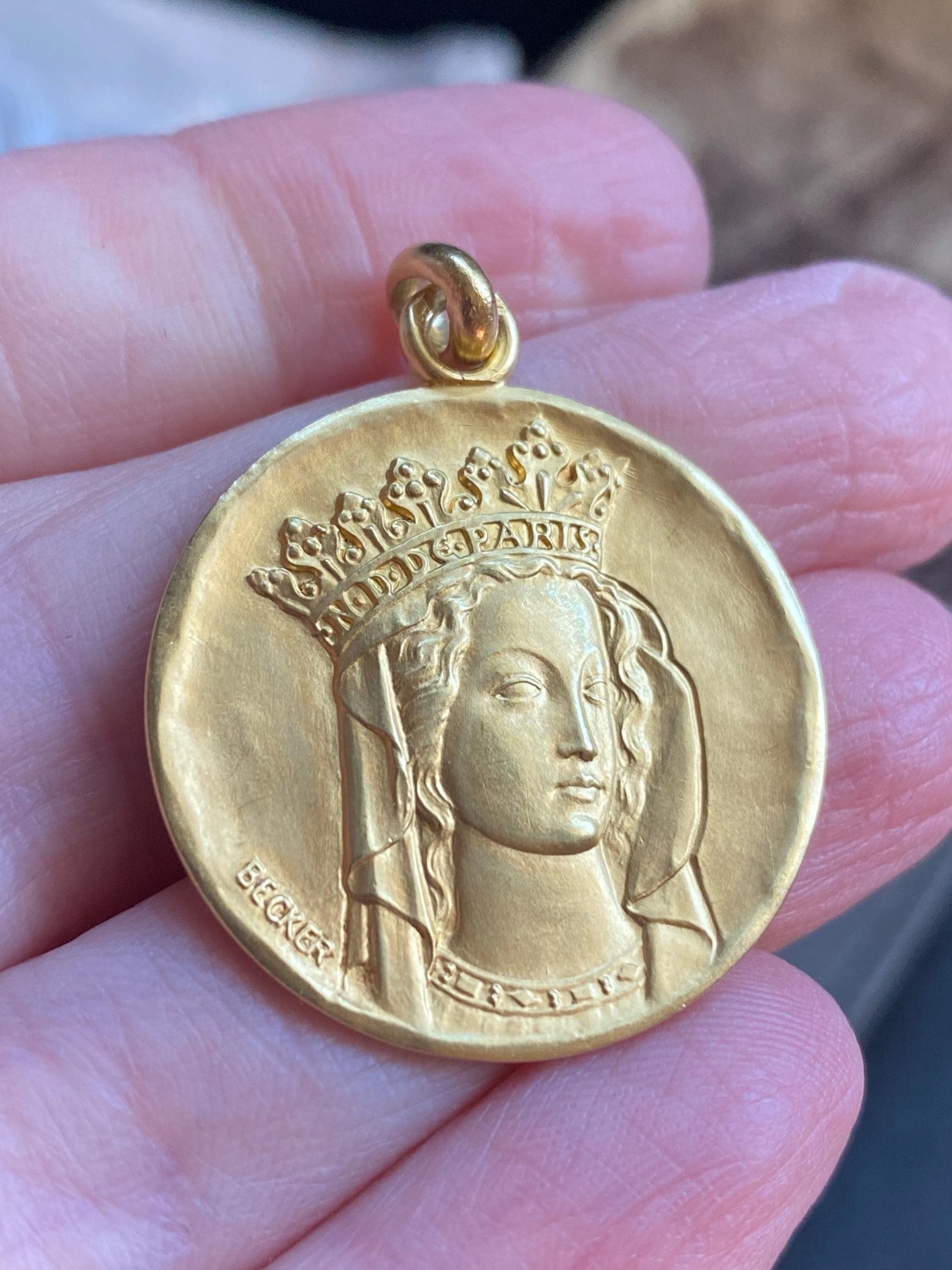 Beatific Becker: there is much to praise about this gorgeous piece of art and devotion--a detailed, heavy & high karat religious medallion to top them all.